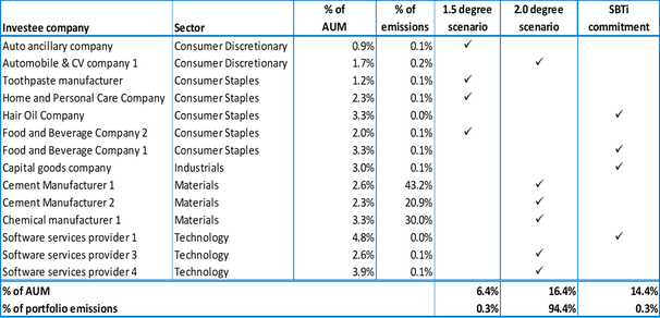 Portfolio GHG* Emission - Companies contributing ~95% of total emissions have committed to reduce intensity