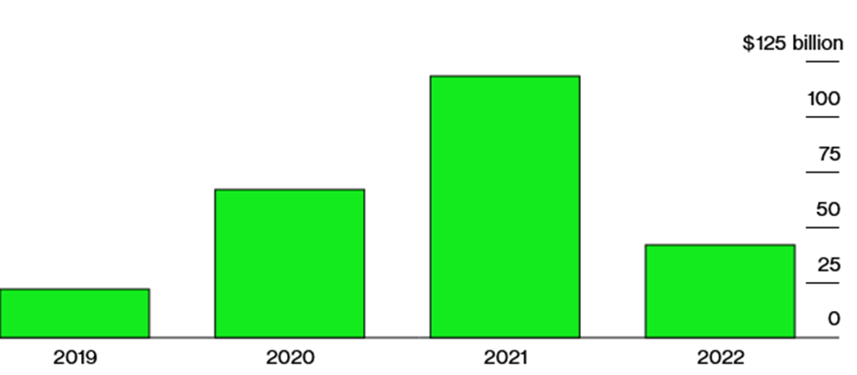 More than $ 330 billion [1] assets under management in ESG funds, around $130 billion capital was poured into exchange-traded funds with an emphasis on environmental, social, and governance in 2021, a five-fold increase over the inflows of just two years prior. The number of new investments in 2022 may be less than $50 billion, which is significantly lower than both 2020 and 2021.