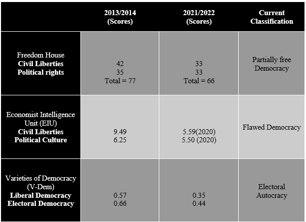 There are indeed some socio-political concerns about PM Modi, the Bharatiya Janata Party (BJP), and the ideological mothership Rashtriya Swayamsevak Sangh (RSS). The party’s social stance towards 200 million Muslims; the corporate consolidation and the party’s hold on media and press; the use of central agencies to target political opponents; the opaque political funding; the tight restrictions on NGO’s to secure overseas funding. These are all aspects which can curb democratic rights and thus reflect in the fall in scores.