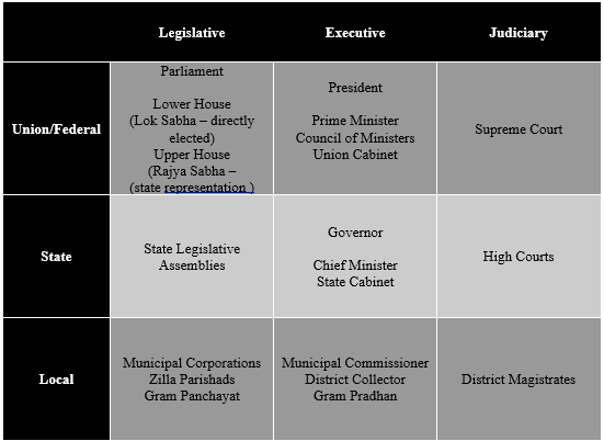 1. India is a parliamentary democracy – with a Federal and State structure