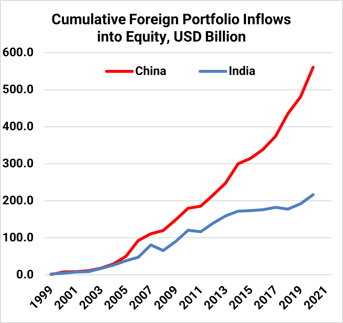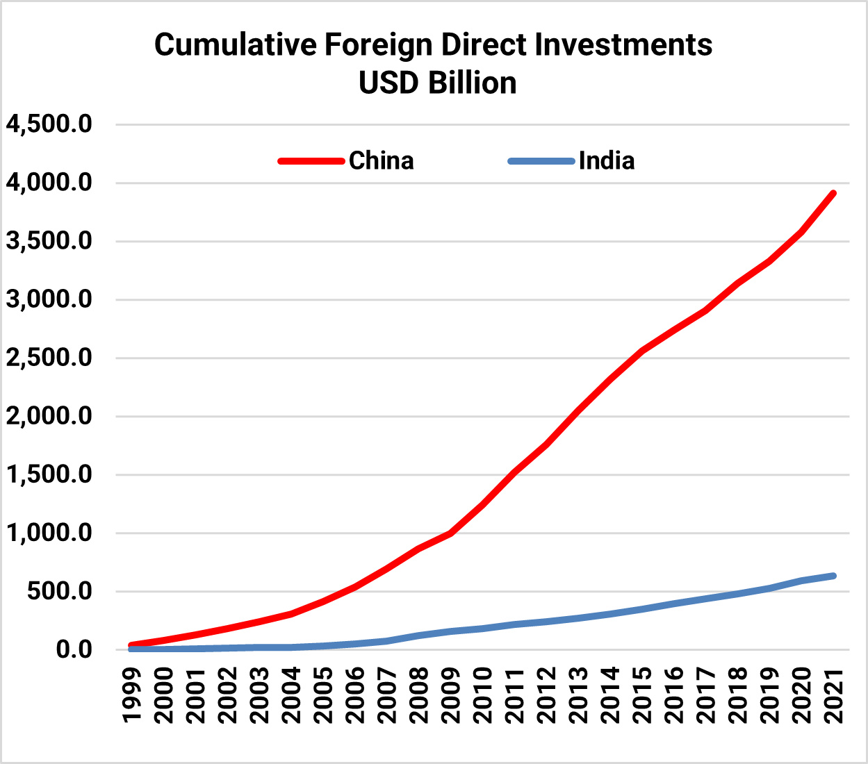 China has grown and has access to domestic capital for its growth. It also has the technology in basic industries to support its economy. India is entering its demographic growth path and requires capital and technology to fund its growth aspirations.