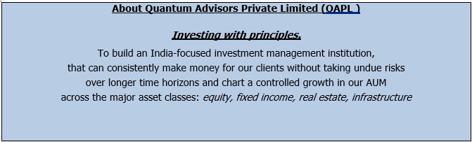 Arvind Chari is the Chief Investment Officer (CIO) at Q India (UK), an affiliate of Quantum Advisors India. Arvind’s vast experience in managing money for global investors and his interactions with leading institutions has exposed him to a world of knowledge. With over 18 years of experience in tracking domestic and global economy he is Quantum’s thought leader and is the author of this Q-India Insight edition.