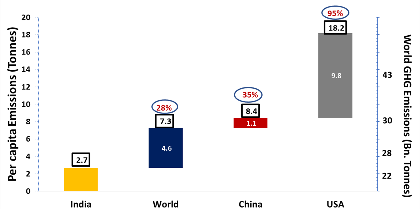 India’s per capita emission is currently just 2.7 tpa – but what will happen as India continues to develop?