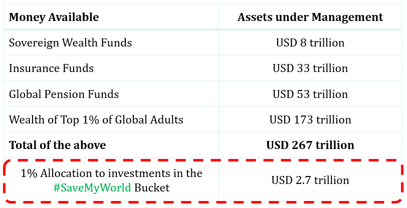 - Unless the money lying with pension funds and Governments in the developed world is invested in developing countries to tackle the challenges of climate change