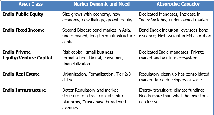 Traditionally, especially in public markets, India has seen allocation as part of Emerging Market, BRIC, Asia-ex Japan, Asia ex China. That has meant that India has remain under-allocated in global asset allocation.