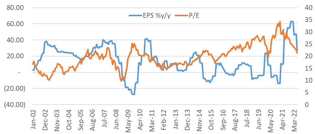 Chart 4: Growth cycle and investor sentiment allows for natural mean reversion of earnings and valuation