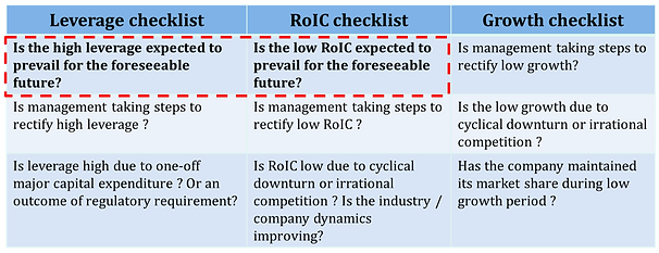 We apply the three quantitative financial filters on our ESG research database of over 150 companies and to its peers i.e. leverage, RoIC and Growth. The objective is to avoid companies within a sector with structurally high leverage and/or poor track record of shareholder wealth creation and/or inferior growth profile.