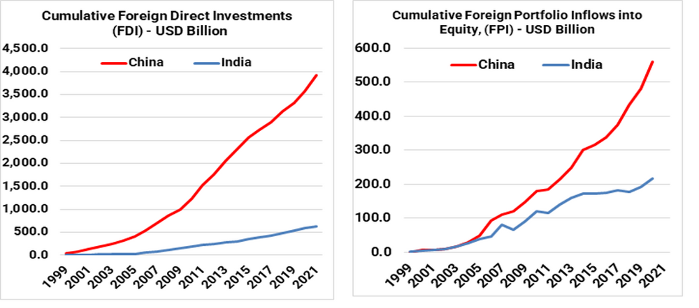Mesmerized by the Chinese dragon many investors have been comfortable leaving India in a generalist “emerging market” bucket in their allocation. The allocation was usually GEM + China with a few venturing to invest in other single countries. Given the large and growing size of the Indian economy and the opportunities it provides for investment, one would have expected investors to seriously look at a dedicated India allocation. Moreover, India has a historical track record of growth in GDP translating in returns in stock markets (Chart 1). However, the crackdown on businesses in China, particularly in the technology sector erased significant chunk from their market value and have again led investors to shy away from single country mandates. Consultants advising Global investors after facing the music from clients for the China exposure are also reluctant to recommend another single country like India. This is a lazy view and is doing injustice to their clients.
