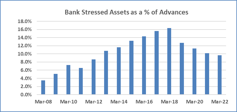 India went through a bad asset quality cycle between 2014-2020 impacting the financial sector and culminating in a credit crisis that accounted for a few banks, shadow banks, and mutual funds.