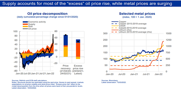 - Greenflation: Inflation caused by increased capital investment in green energy and low carbon technologies - leading to increased demand of critical material like lithium, cobalt, nickel, graphite and manganese causing prices to increase.