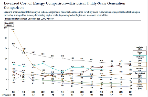 According to Lazard, the average cost per megawatt hour of solar electricity in United States is $36 and wind is $38. Even before the recent spike in fossil fuel prices, the equivalent cost of energy from coal was $108 and gas was $60. Over the last decade, the solar and Wind generation costs have fallen by 90% and 60% respectively. With technological innovation, learnings translating to experience curves, substitution and efficiency will all drive prices towards affordability. A group of academics at Oxford University have modelled likely future prices of solar on a probability distribution curve, and their central forecast is that they will reach around $10 per MWh by 2050. Moreover, they note that the faster we deploy renewables, the quicker the costs will fall.