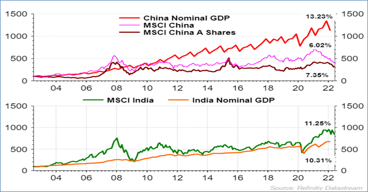 Be that as it may, investments into China have also not been as successful, especially in the public equity markets. The returns from its public equity markets have not been commensurate with the GDP growth that the economy has reported.