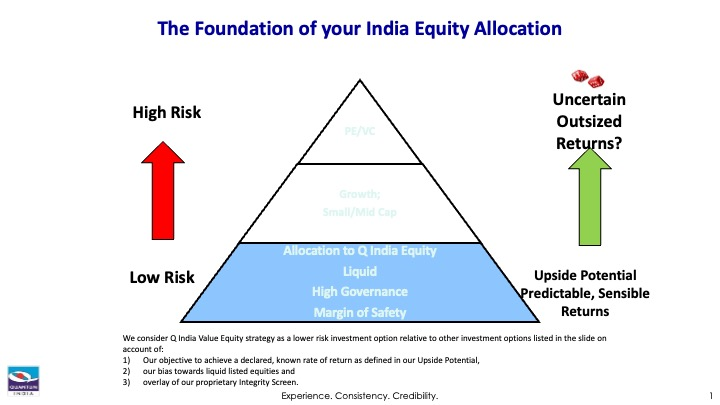 For detailed description of Q India Value Equity Strategy such as investment objective, assets allocation pattern, investment strategy and philosophy, associated risk factors and other details please refer to the Disclosure Document available at www.qasl.com.