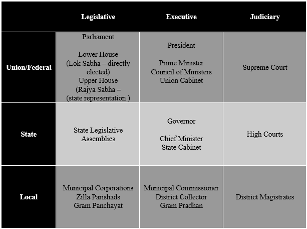 1) India is a parliamentary democracy – with a Federal and State structure