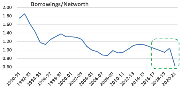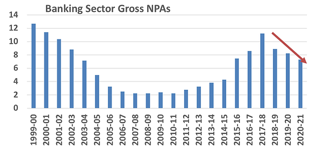 (Source: CMIE economic outlook – ratio calculated for non-financial corporate aggregate data, Banking NPAs % - RBI; Annual Data)