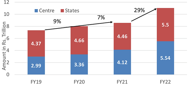 This global demand for goods has meant that Indian exports have finally begun to increase after a 10 year lull. Exports of goods is running at an annual pace of USD 350 billion as compared to USD 280 billion in 2019.