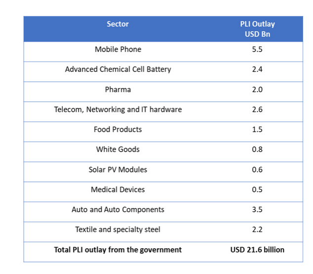 One is the ‘China Plus One’ theme, as global MNCs look for manufacturing and supply chain outside of China. India has done a poor job up until now in attracting those business. However, 2/3 sectors have benefitted from the shift in supply chain – chemicals and pharmaceuticals and electronic goods. The other is India’s Production Linked Incentive (PLI) to further ‘Make in India’ and get into the global supply chain.