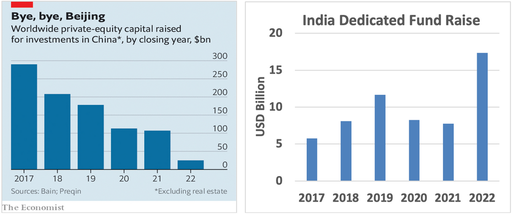 Chart 2 and 3: China +1 = India in Private Market Investing