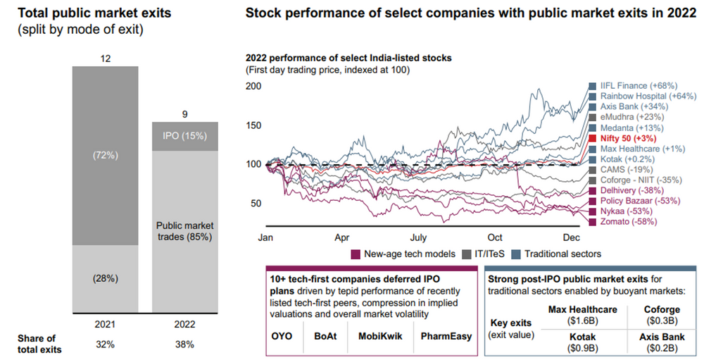 Public markets have the appetite to absorb private market exits as seen from data. However, they have now wisened up to the relentless supply that can follow. More than that, they will be very vary of the valuation that they offer to private market investors at the IPO, given the outcome of some of the marquee tech driven VC exits.