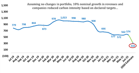 The Q India Responsible Returns ("QIRR") Strategy takes the above factors into consideration and refrains from developing an exclusion list based solely on the carbon intensity of an energy source. We prefer to engage with companies that currently have a high carbon footprint and nudge them towards adopting science-based targets to improve their carbon intensity aligning with the goals of the Paris Agreement. Based on our analysis of our portfolio companies we expect the carbon intensity to decline from current levels of ~570 tonnes / $ mn revenues to 310 tonnes / $ mn revenues.