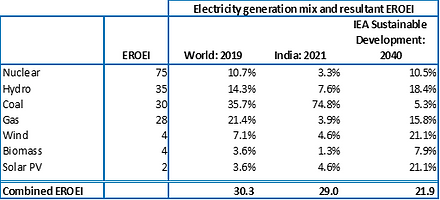 Any planned change in the energy mix should take into account the resultant impact on the well-being of society at large. Currently IEA's “Sustainable Development” scenario leads to a decline in World average EROEI from ~ 30 to ~ 22.