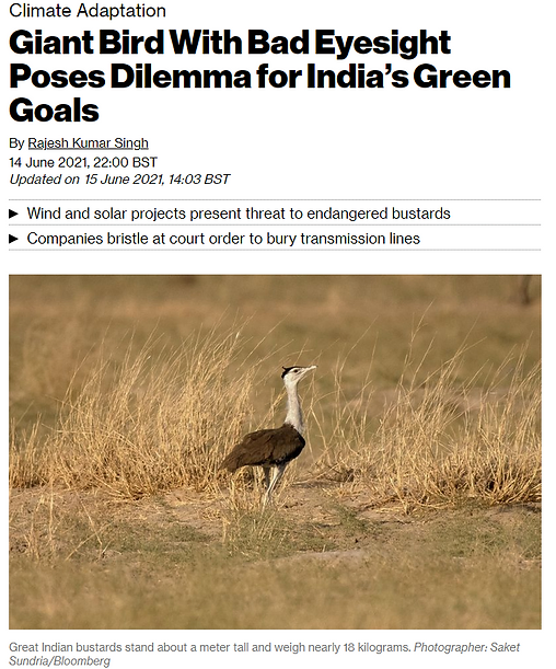 Its unthinkable, India's quest for going green is being challenged by a bird - the Great Indian Bustard. Renewable energy companies have promoted themselves as the 'noble' alternative, what is often missed is their ecological footprint. Amidst the sand dunes of Rajasthan, the tall wind turbines, and lofty steel towers with a promise of clean energy hide a critically endangered bird that has been on a collision course with the power companies' high-tension wires. The frenzy around so-called clean energy often masks the darker side of it, the impact it has on the ecology, biodiversity, or the society.