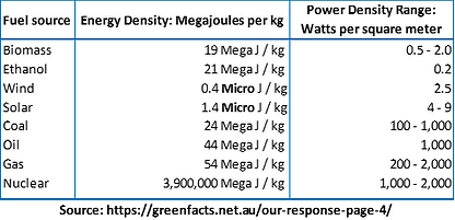 The power density of a fuel determines its true environmental and health impact, and this should be an important consideration in planning the power generation mix.