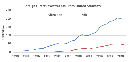 India is also not the largest US FDI destination. China and HK over the years have seen much higher investments by US corporations.