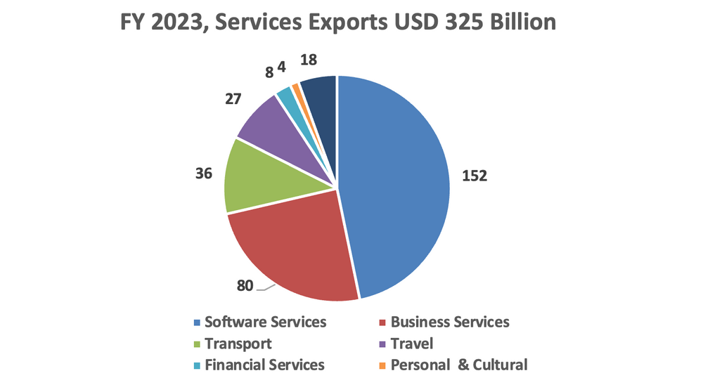 India’s IT services exports as listed of ~USD 150 billion is India’s largest sunrise success story of the last 3 decades. ~55% of that software exports go to the US. US Corporations, foundations, universities and the government have been the biggest driver of Indian IT services.