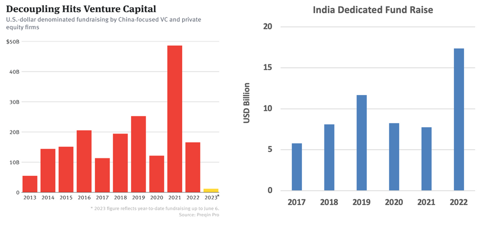 Chart 3 and 4: Silicon Valley has pivoted to India from China