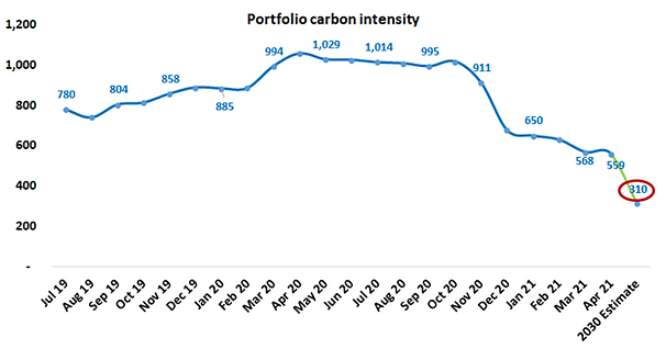 Currently our portfolio carbon intensity stands at ~ 560 tonnes per $ mn of revenues. We assume our investee companies to grow at a real rate of 6% and nominal rate of 10%. Assuming our investee companies reduce their emission intensity in line with their declared targets, we estimate portfolio emission intensity to decline by 1.7% CAGR. At this rate our portfolio emission intensity by 2030 will decline to ~ 310 tonnes per $ mn of revenues.