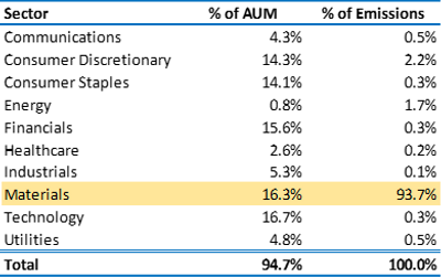 Nearly 70% of the portfolio’s current emissions are attributed to our holding in 3 cement manufacturers. The future course of the portfolio emissions intensity will depend to a great extent on how these companies are managing the GHG risks and opportunities related to the low-carbon transition. In our research process, we also pay a lot of attention to management intent. If there is a clear communication of targets, alignment with best practices and a demonstrable intent to improve, we will be willing to stay invested in such companies.