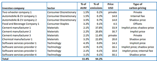 a) 33% of portfolio AUM contributing 94% of total portfolio carbon emissions have established an internal carbon price.