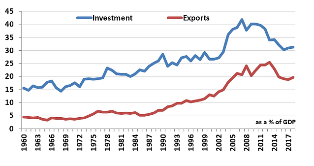 The Asian economies starting from Japan in the 60s, South Korea in the 70s-80s and then China in the 90s-00s: all managed to havedouble digit GDP growth for many years in a row. The common driver was increase in investments in manufacturing and infrastructure, followed by increase in exports and a sustained rise in per-capita incomes.