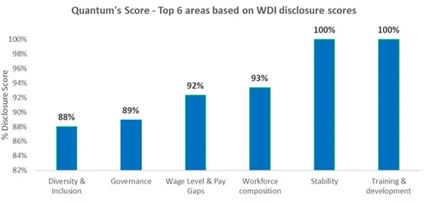 We submitted our workforce disclosure to WDI in December 2020. Quantum had a score of 101 out of 175 points across 13 sections ranging from supply chain management to health and well-being policies to compensation structures to diversity and inclusion policies.