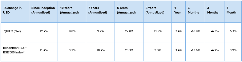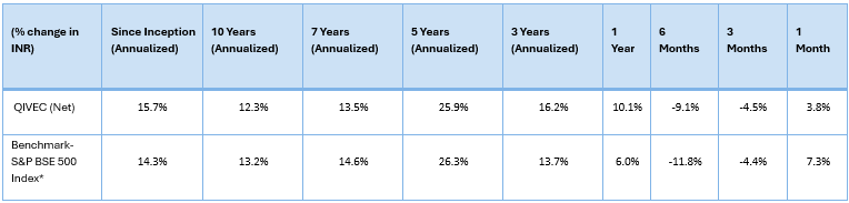 Table: Performance of the Q India Value Equity Composite (QIVEC) computed as per methodology prescribed under SEBI guidelines